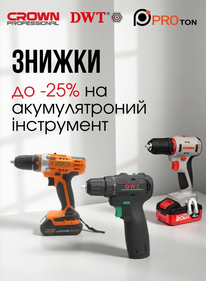 DrillBAR - интернет-магазин от официального представителя в Украине производителя инструментов и техники - компании Merit Link. Бренды компании – DWT и CROWN более 20 лет представлены на рынке Украины и имеют статус надежных помощников и эффективного орудия в любом доме или на строительной площадке.